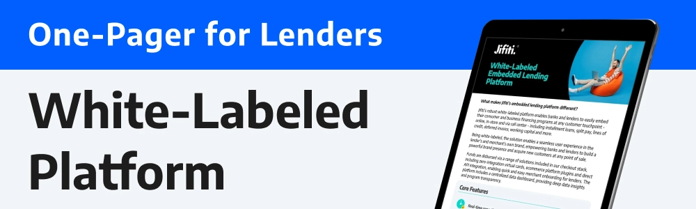 Jifiti’s White-Labeled Embedded Lending Platform empowers banks and lenders to seamlessly embed consumer and business financing programs at any customer touchpoint—online, in-store, via call centers, and beyond.